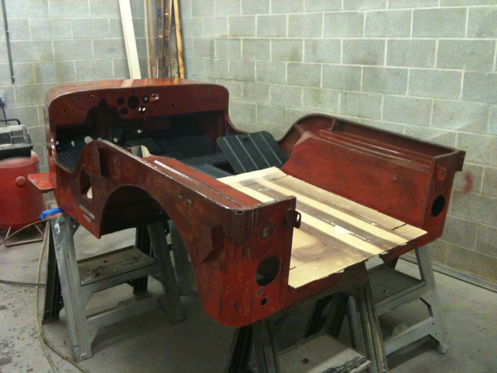 Bed and floor pans being lined.